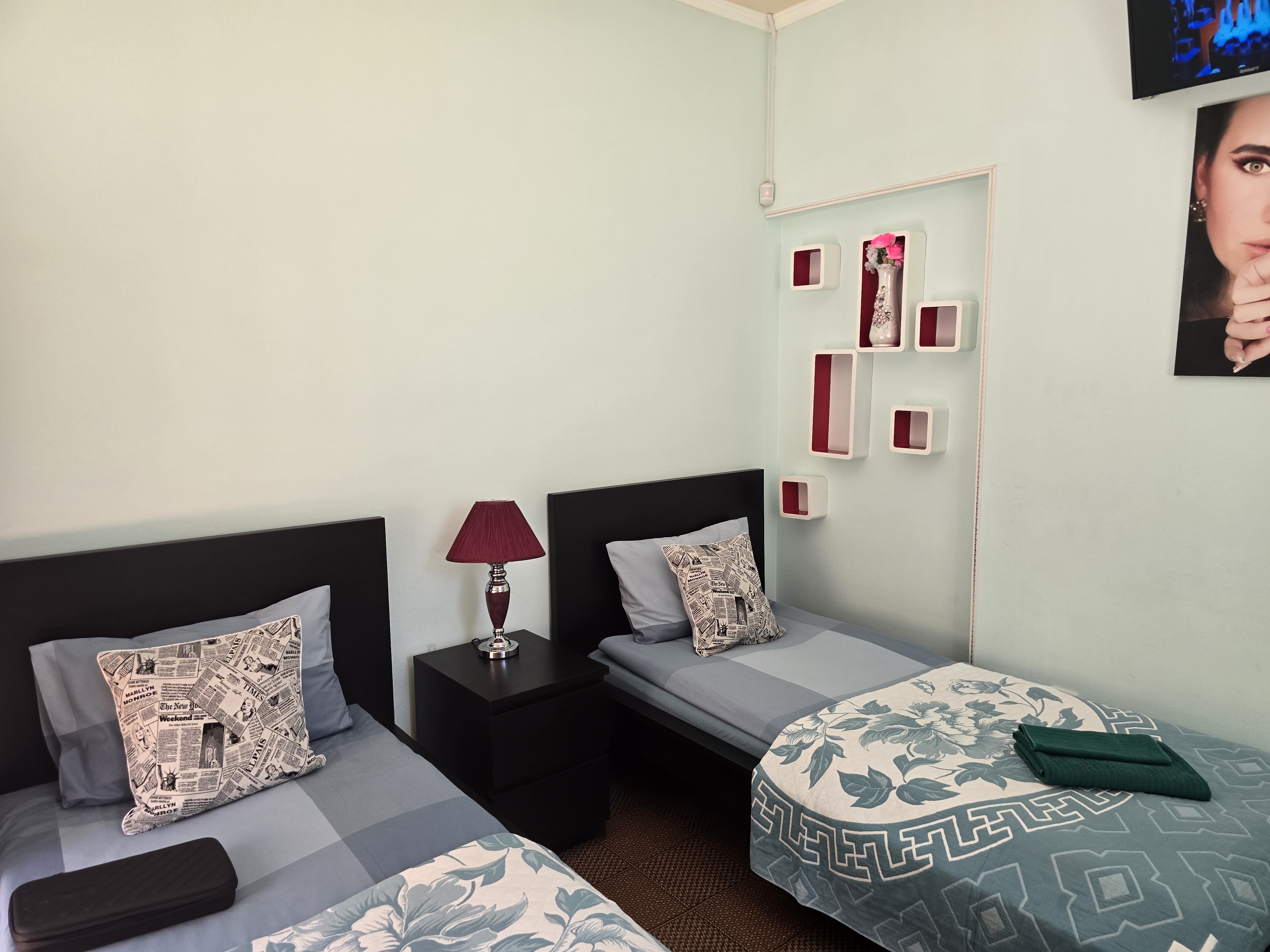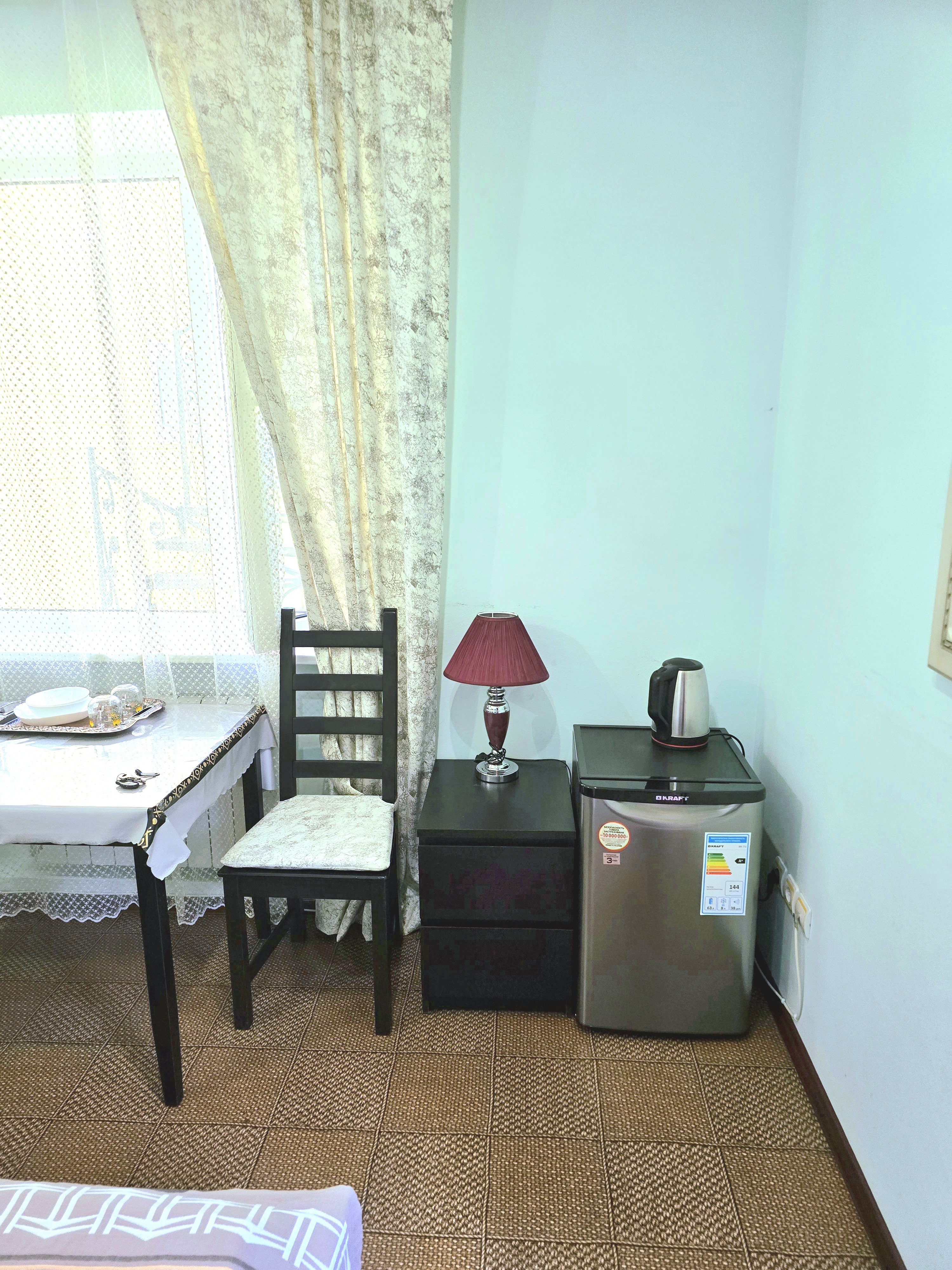 Все номера укомплектованы новой мебелью, собственной душевой и туалетом, постельными принадлежностями, холодильником, телевизором.